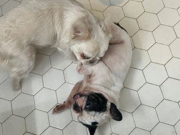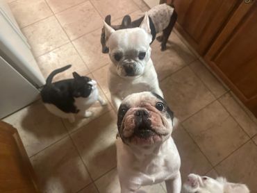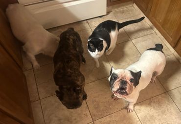 Great with other dogs and cats; has a high prey drive when outside with squirrels and birds so no small animals like guinea pigs, hamsters, lizards, etc.